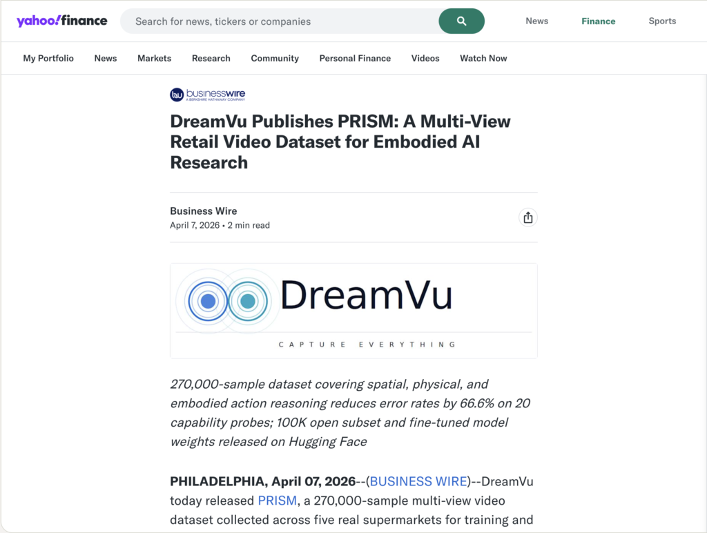 DreamVu Publishes PRISM: A Multi-View Retail Video Dataset for Embodied AI Research