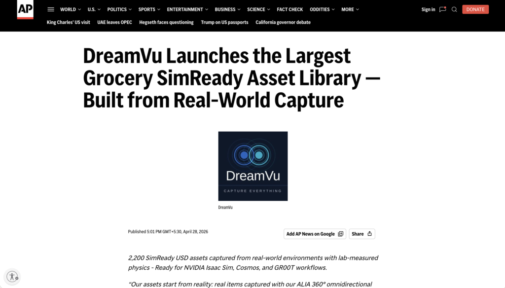 DreamVu Launches the Largest Grocery SimReady Asset Library — Built from Real-World Capture